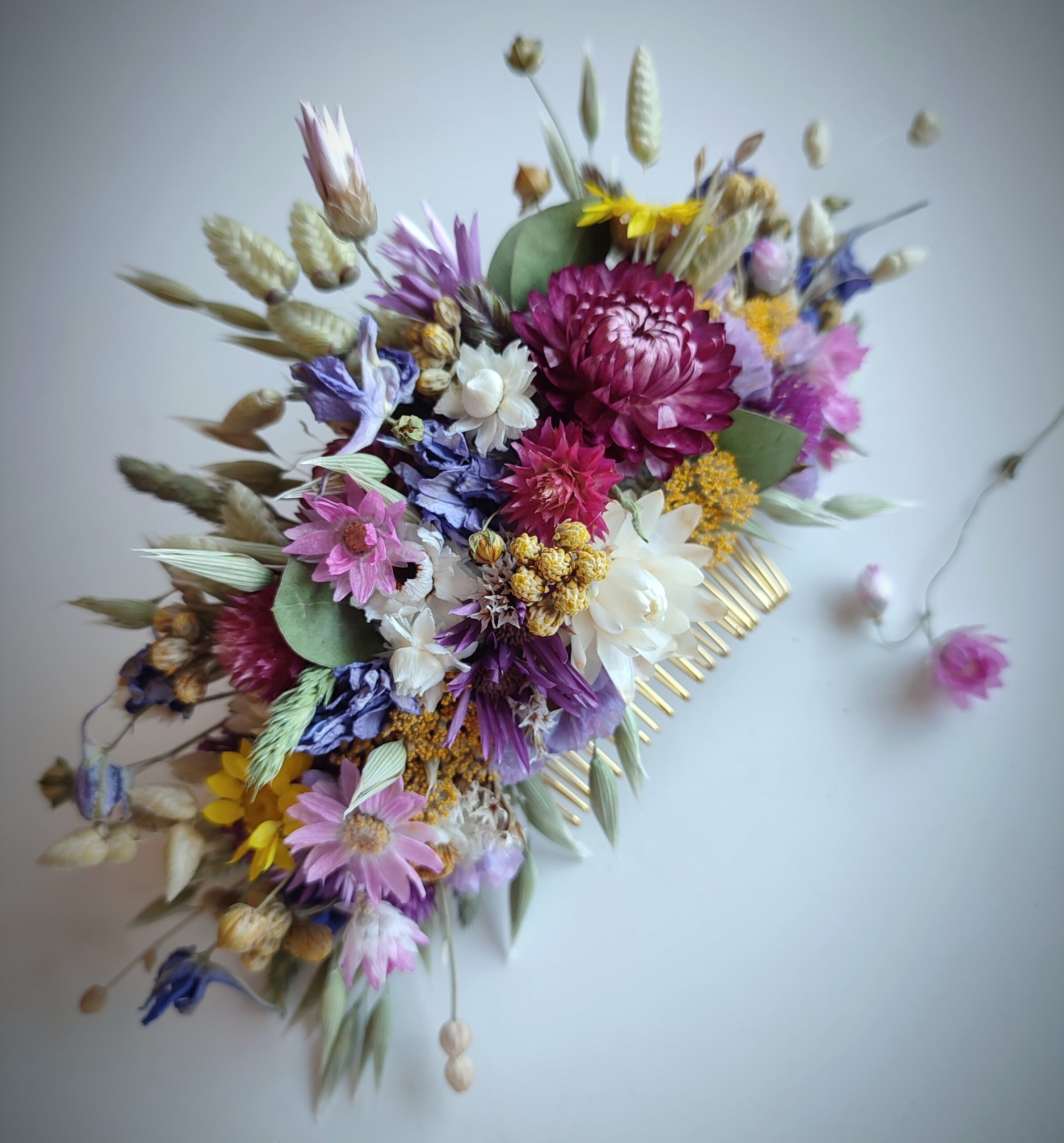 I take great pride in creating each hair comb by hand, carefully selecting and arranging each bloom, creating a one-of-a-kind design tailored to your style.