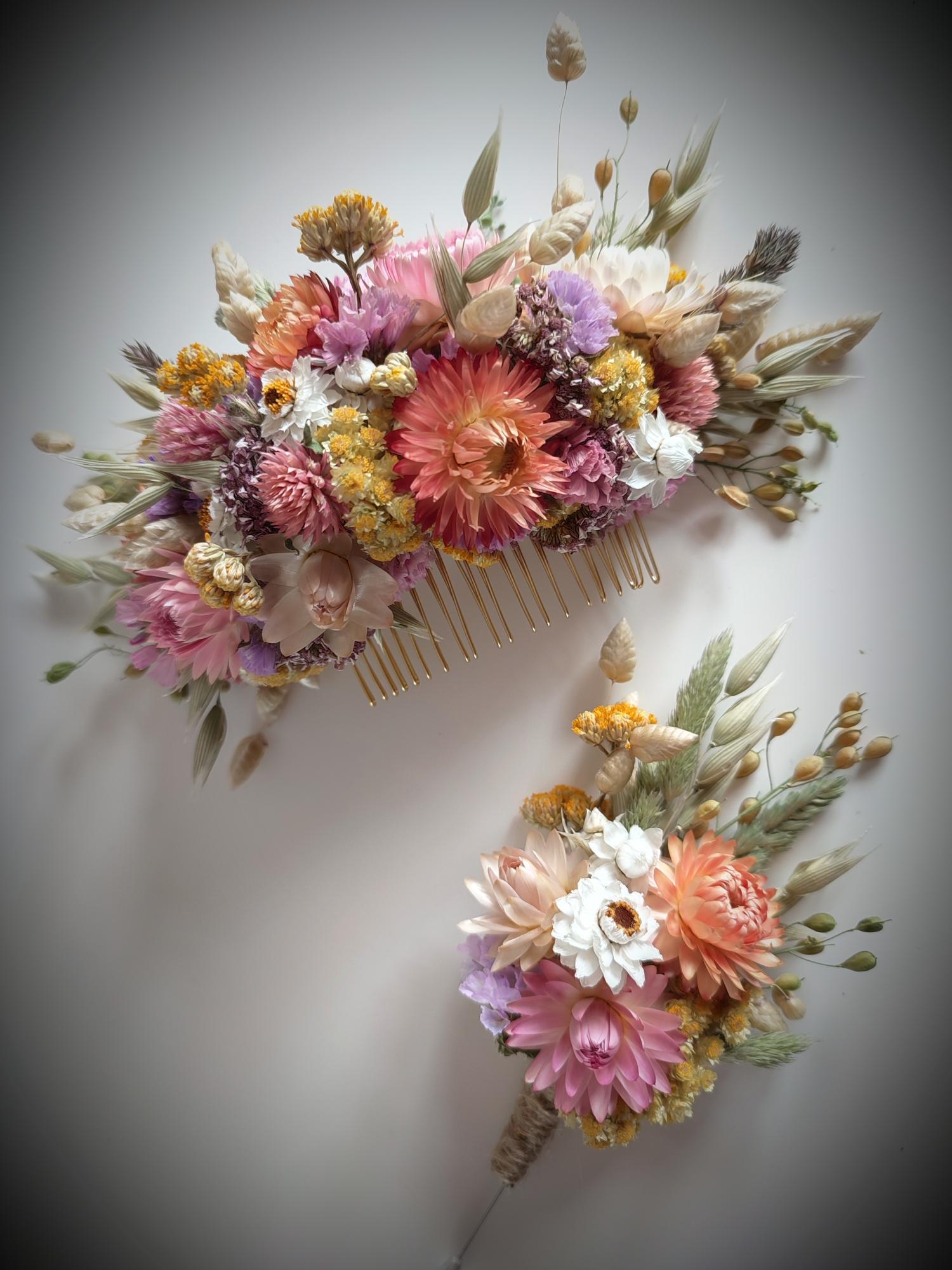 Whether you’re a bride, bridesmaid, or guest, floral hair combs make beautiful accessories that are bespoke made to your colour palette and style 🌺