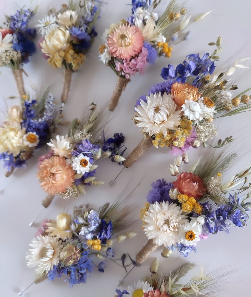 Each arrangement is crafted with love and care, tailored to reflect your unique vision. I proudly grow many of the flowers myself or source them from local British growers. They’re naturally dried, free from dyes or chemicals, ensuring that your wedding florals are not only beautiful but also sustainable and one-of-a-kind.